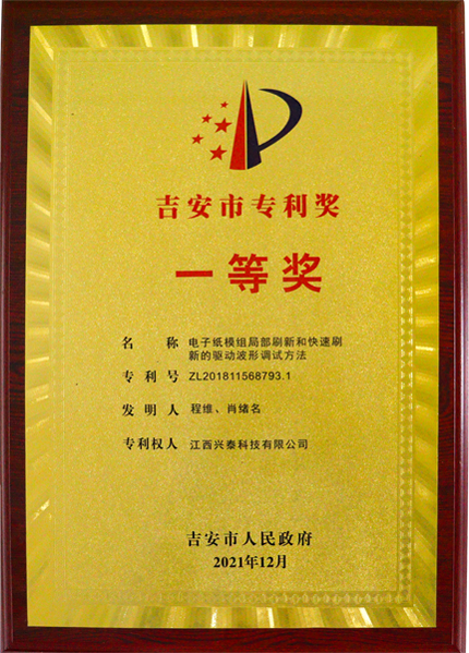 近期,吉安市人民政府公布了《關于2021年度吉安市專利獎授獎的決定》。合力泰“電子紙模組局部刷新和快速刷新的驅(qū)動波形調(diào)試方法”、“一種攝像頭模組封裝方法”等兩項發(fā)明專利因技術創(chuàng)新點突出,達到行業(yè)領先水平,具有顯著的經(jīng)濟效益和社會效益,分別榮獲吉安市專利獎一等獎和三等獎。
