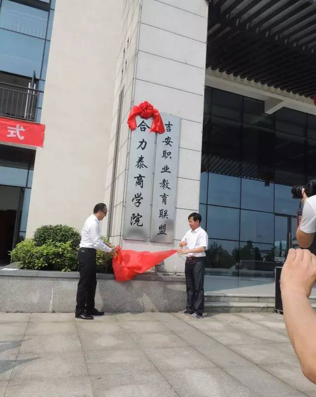 最后,吉安職業(yè)技術(shù)學(xué)院歐陽(yáng)書記與文董事長(zhǎng)共同剪彩揭牌,見(jiàn)證著這歷史性的時(shí)刻,標(biāo)志著合力泰商學(xué)院正式揭牌成立,全體參加揭牌儀式的嘉賓集體留念合影。