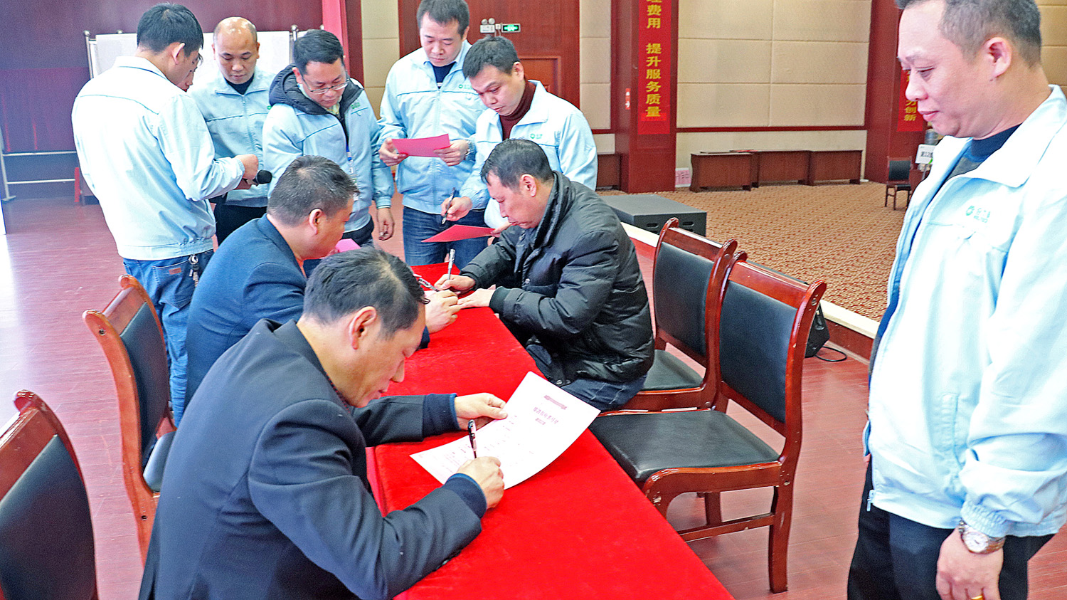 會議最后,在全體與會管理干部的見證下,各事業(yè)群和部門負(fù)責(zé)人一一走上主席臺,分別與陳貴生總裁簽訂了2019年度績效目標(biāo)責(zé)任狀,吹響了向2019
