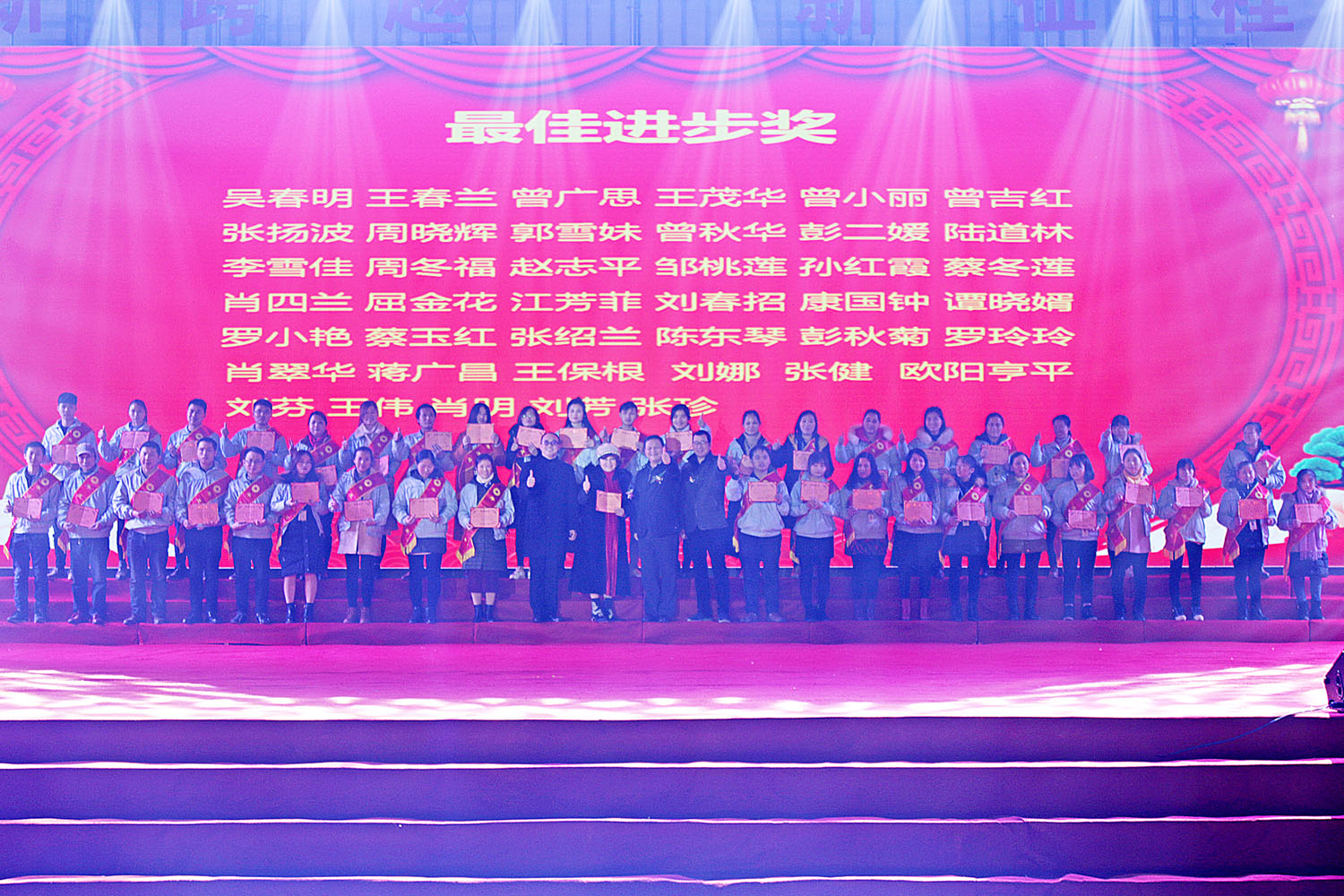 頒獎(jiǎng)典禮上,公司高層領(lǐng)導(dǎo)為過去一年給合力泰發(fā)展做出突出貢獻(xiàn)的近300名優(yōu)秀個(gè)人和團(tuán)隊(duì)頒發(fā)表彰,感謝他們一年來的辛勤付出和取得的突出業(yè)績,鼓勵(lì)他們在新的一年起到模范帶頭作用,做出新的貢獻(xiàn),號(hào)召更多的合力泰人以優(yōu)秀為榜樣,學(xué)習(xí)他們在各自崗位上盡職盡責(zé)、勤奮忠誠,特別是舍小家顧大家的團(tuán)隊(duì)精神。他們分別被授予“質(zhì)量之星”、“產(chǎn)量之星”、“管理技術(shù)服務(wù)先鋒”、“優(yōu)秀班組”、“最佳進(jìn)步獎(jiǎng)”、“優(yōu)秀銷售團(tuán)隊(duì)及個(gè)人”、“優(yōu)秀事業(yè)部”、“十年忠誠服務(wù)獎(jiǎng)”以及“董事長特別貢獻(xiàn)獎(jiǎng)”等榮譽(yù)稱號(hào),最高獎(jiǎng)勵(lì)金額更是高達(dá)20萬元。在《2018年度感動(dòng)合力泰十大人物》頒獎(jiǎng)環(huán)節(jié),歐陽三蓮的紀(jì)錄片以她在平凡崗位上的不平凡表現(xiàn)深深打動(dòng)了現(xiàn)場觀眾。