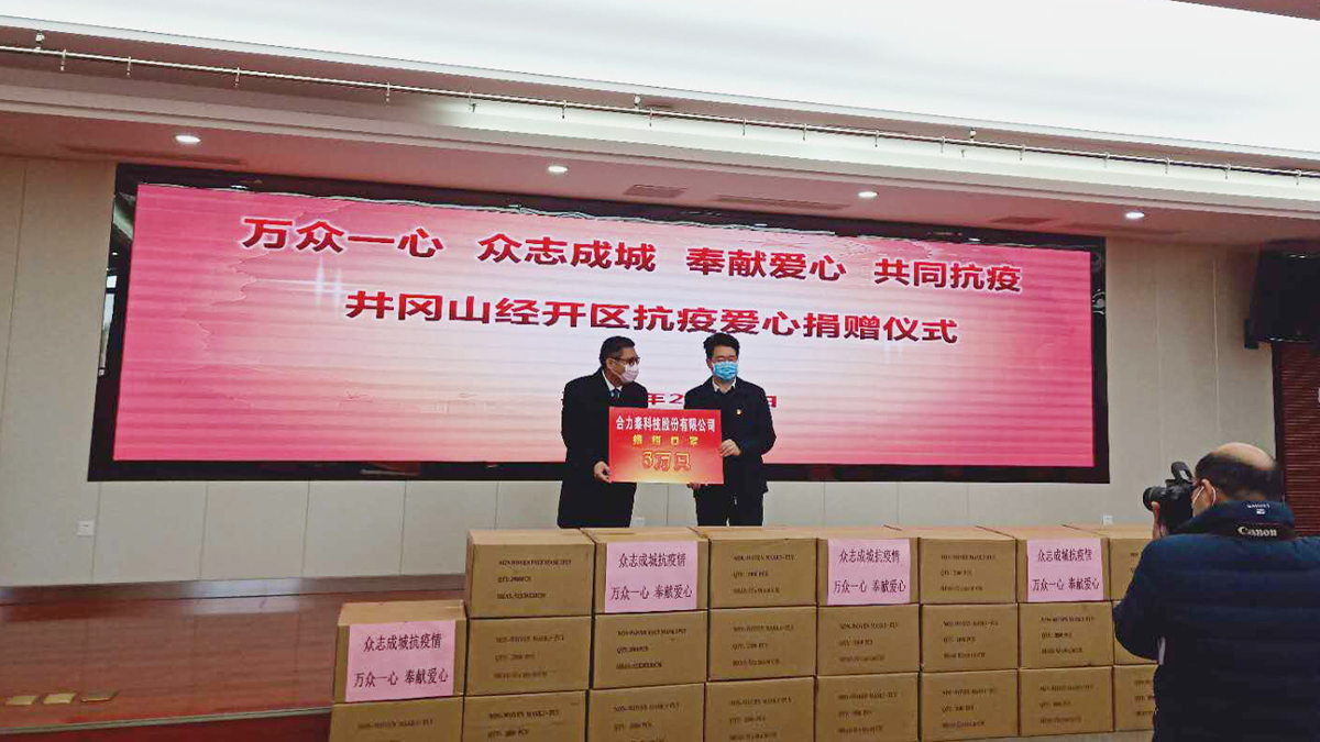 2月15日,合力泰向泰和縣捐贈(zèng)十萬(wàn)只口罩,泰和縣副縣長(zhǎng)肖紅向合力泰表示感謝,并表示將以最快速度將捐贈(zèng)物資送至抗疫一線(xiàn)。